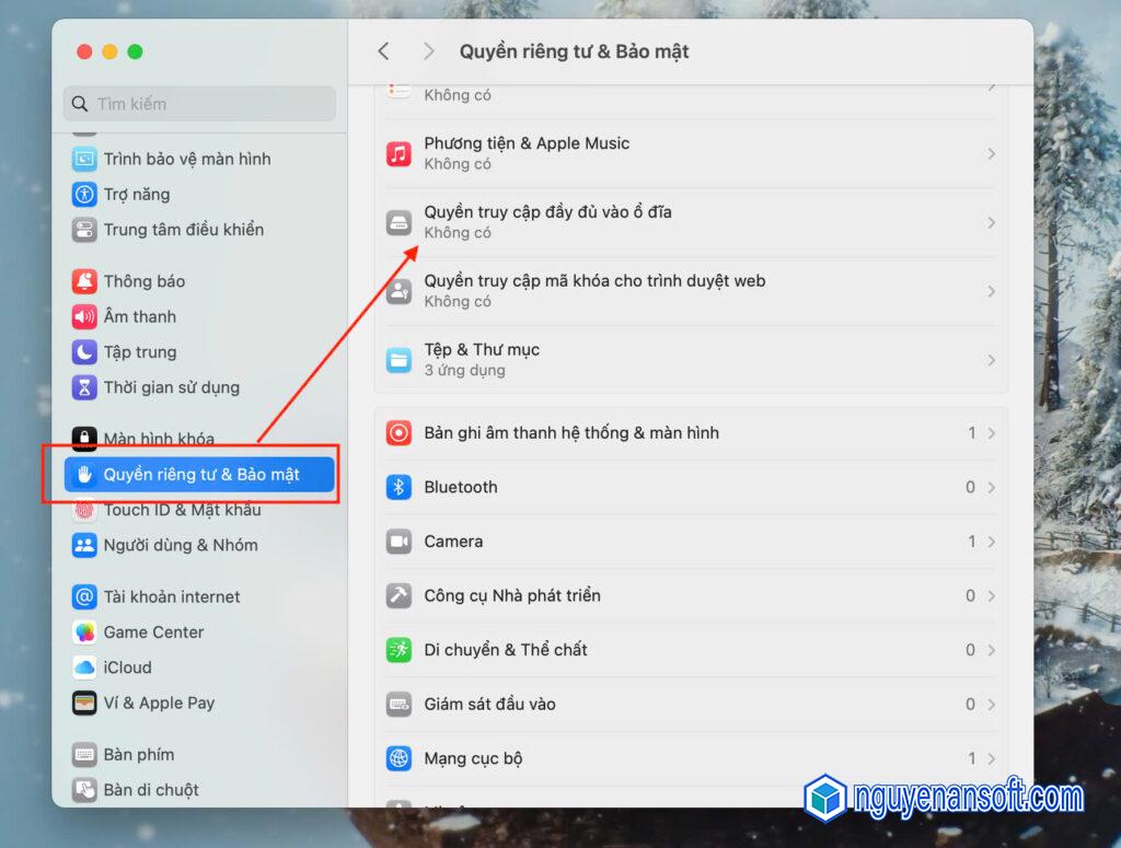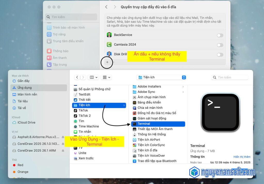 2. Cấp quyền cho terminal như hướng dẫn ở hình này